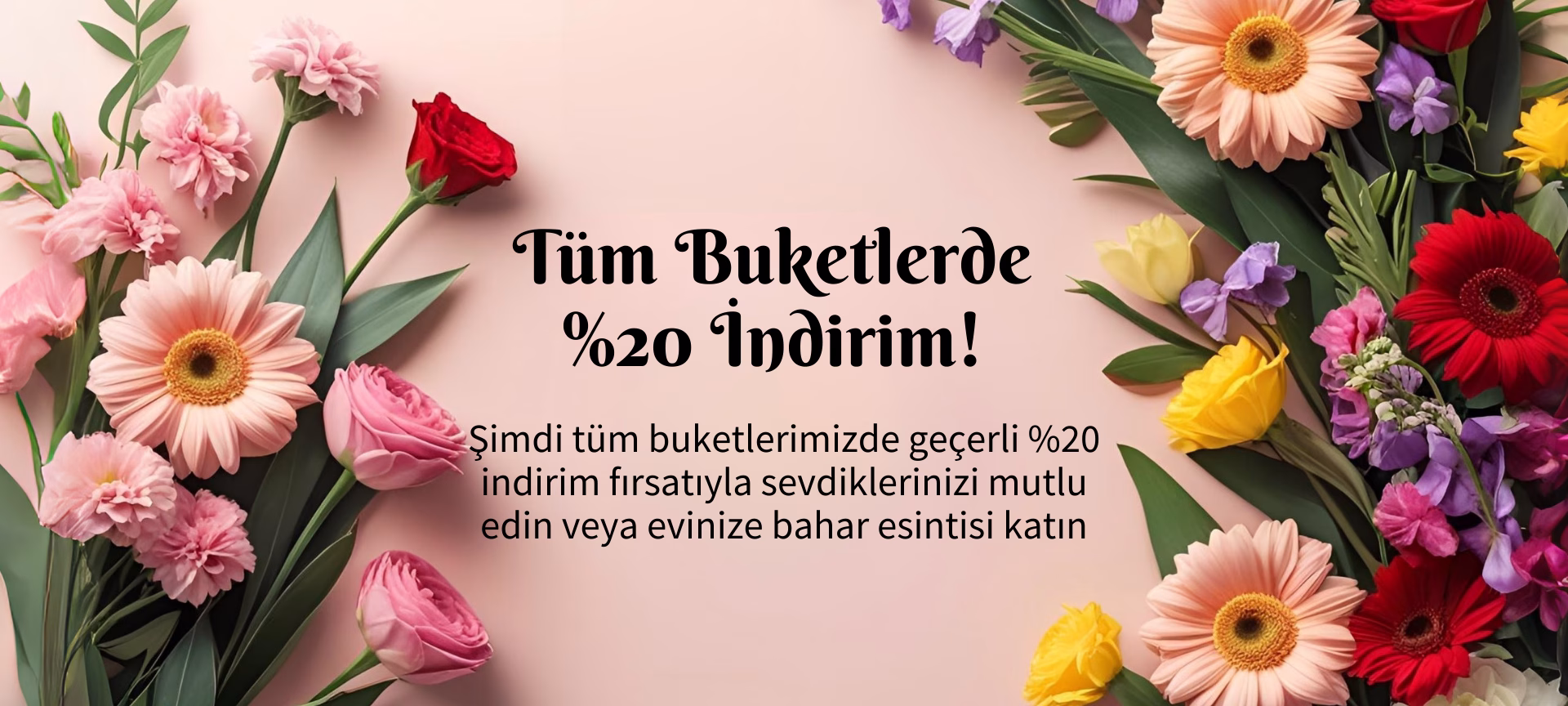 Taze çiçek buketlerindeki %30 indirimi kaçırmayın; sevdiklerinizi mutlu etmek için hemen sipariş verin.