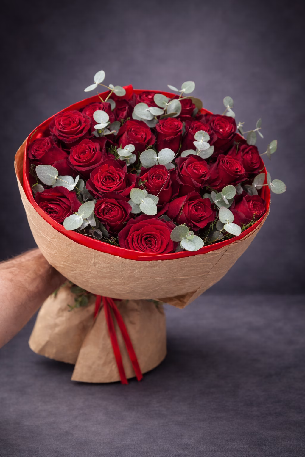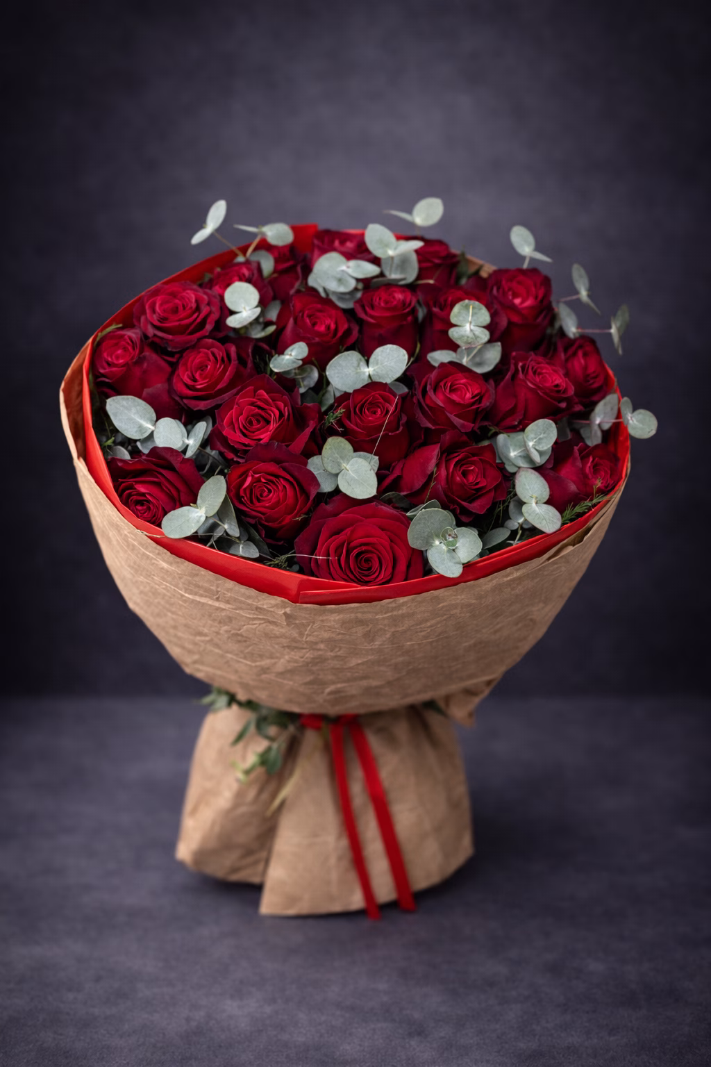 Özenle seçilen 21 adet premium kırmızı gül, doğal yeşillikler eşliğinde modern ve şık bir sunumla hazırlanır.