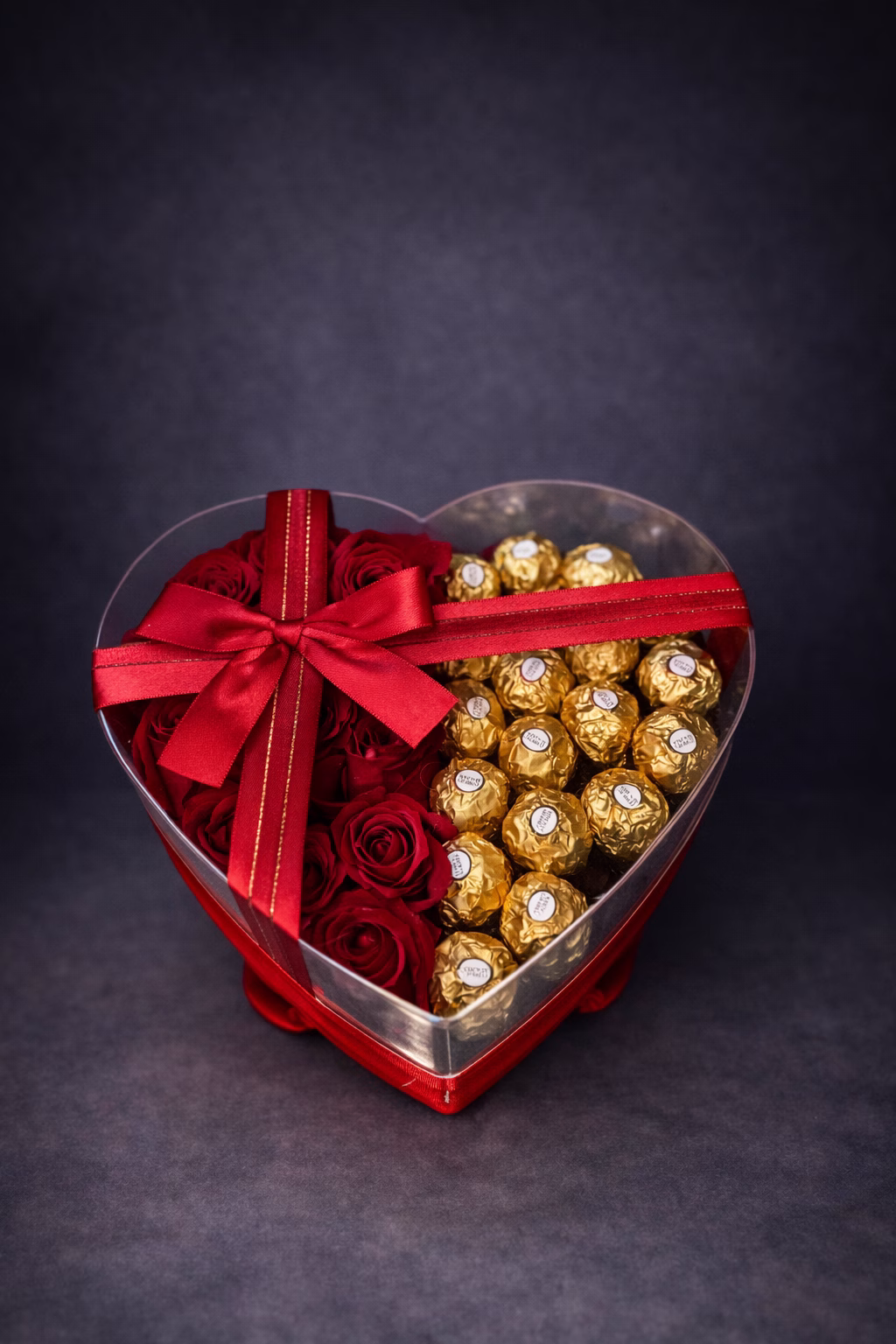 Kırmızı gül ve Ferrero Rocher‘lerin kalpte buluşması. Romantizm ve lezzeti birleştiren, %100 etki garantili özel kutu! Sevgililer Günü, yıl dönümü ve tüm kalpten gelen kutlamalar için mükemmel.